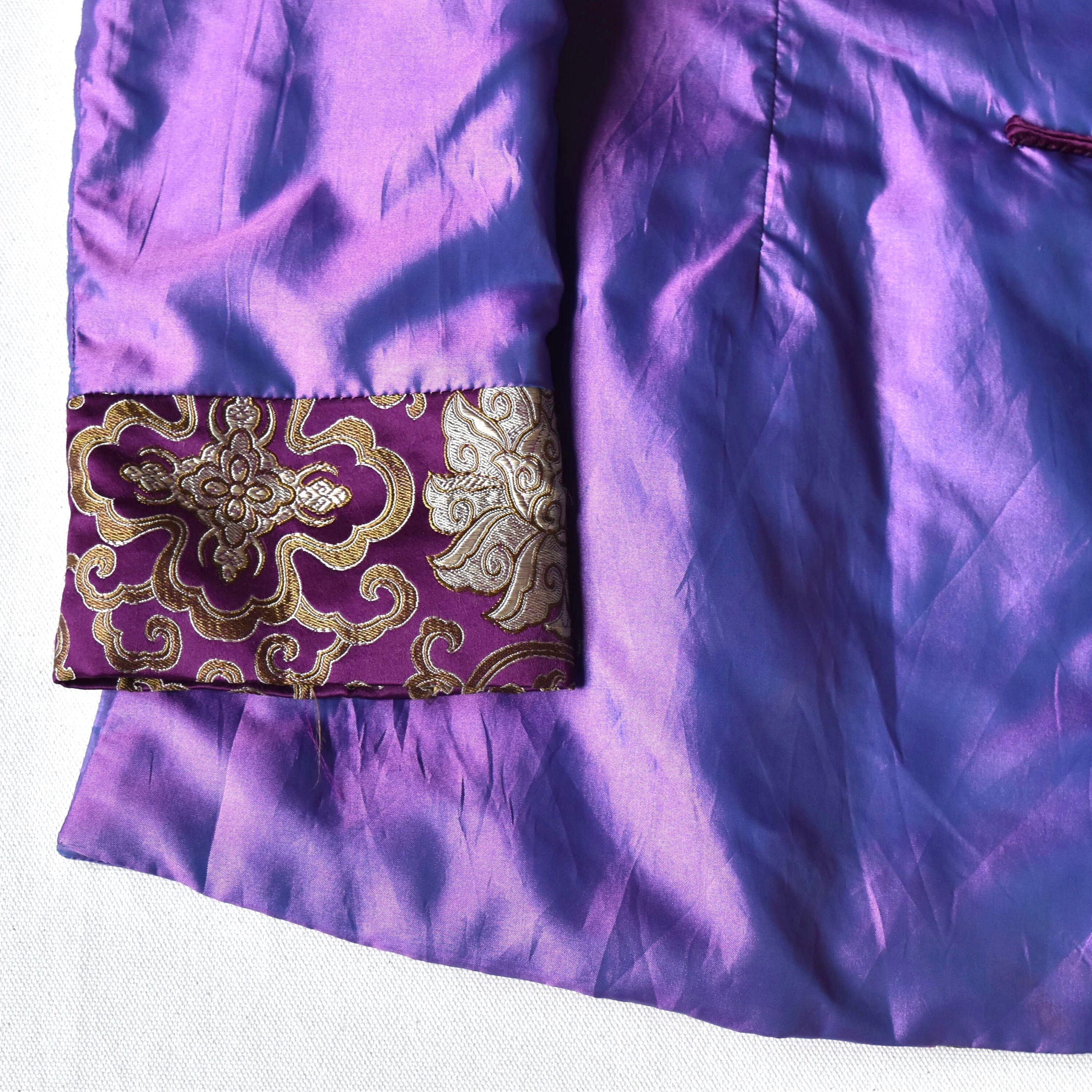 やや玉虫感のあるパープル系の光沢をもつサテン生地で