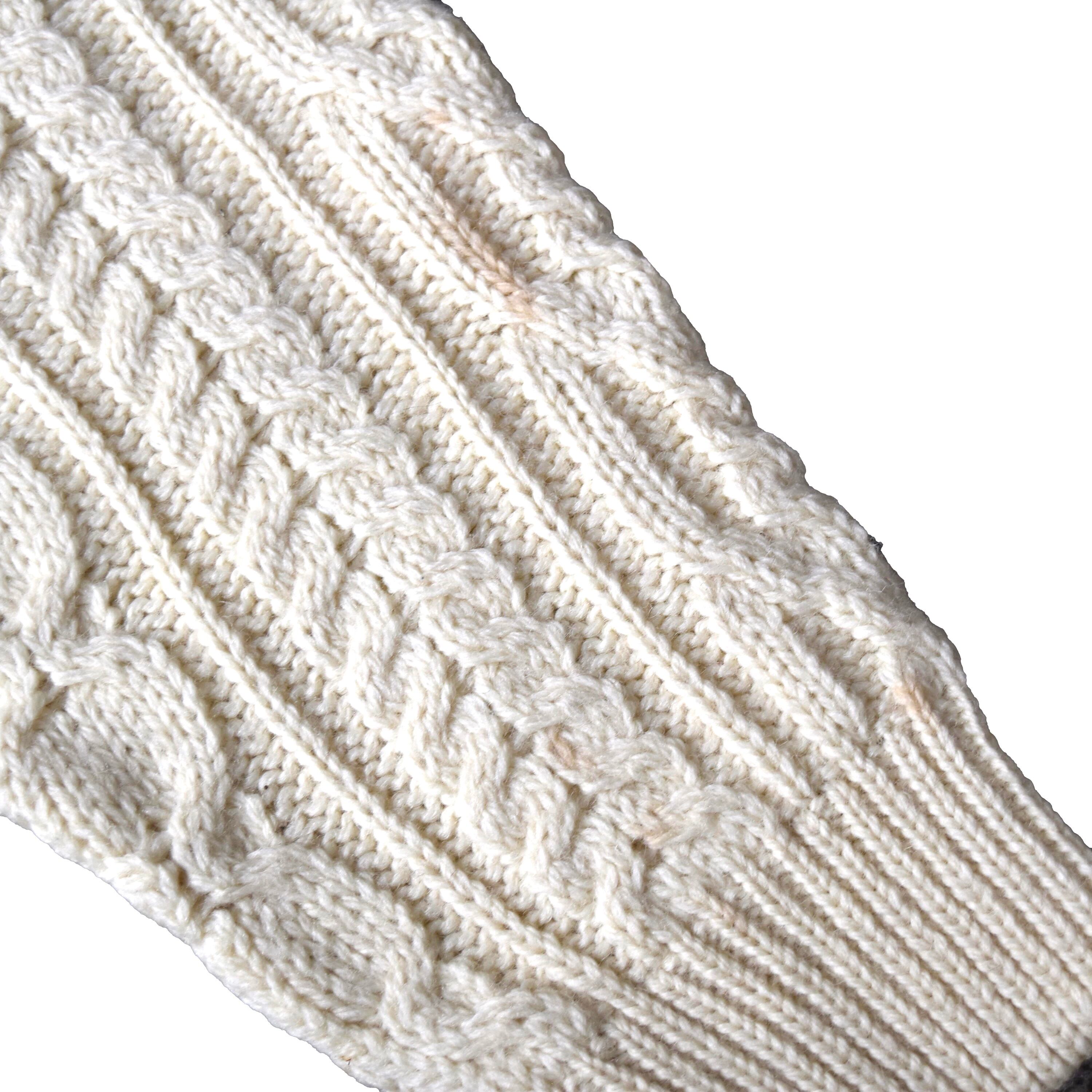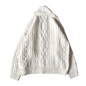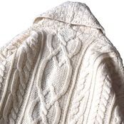 ピュアなホワイトの色味とケーブル編みが美しく、ショールカラーからは品のあるエレガントさを感じます