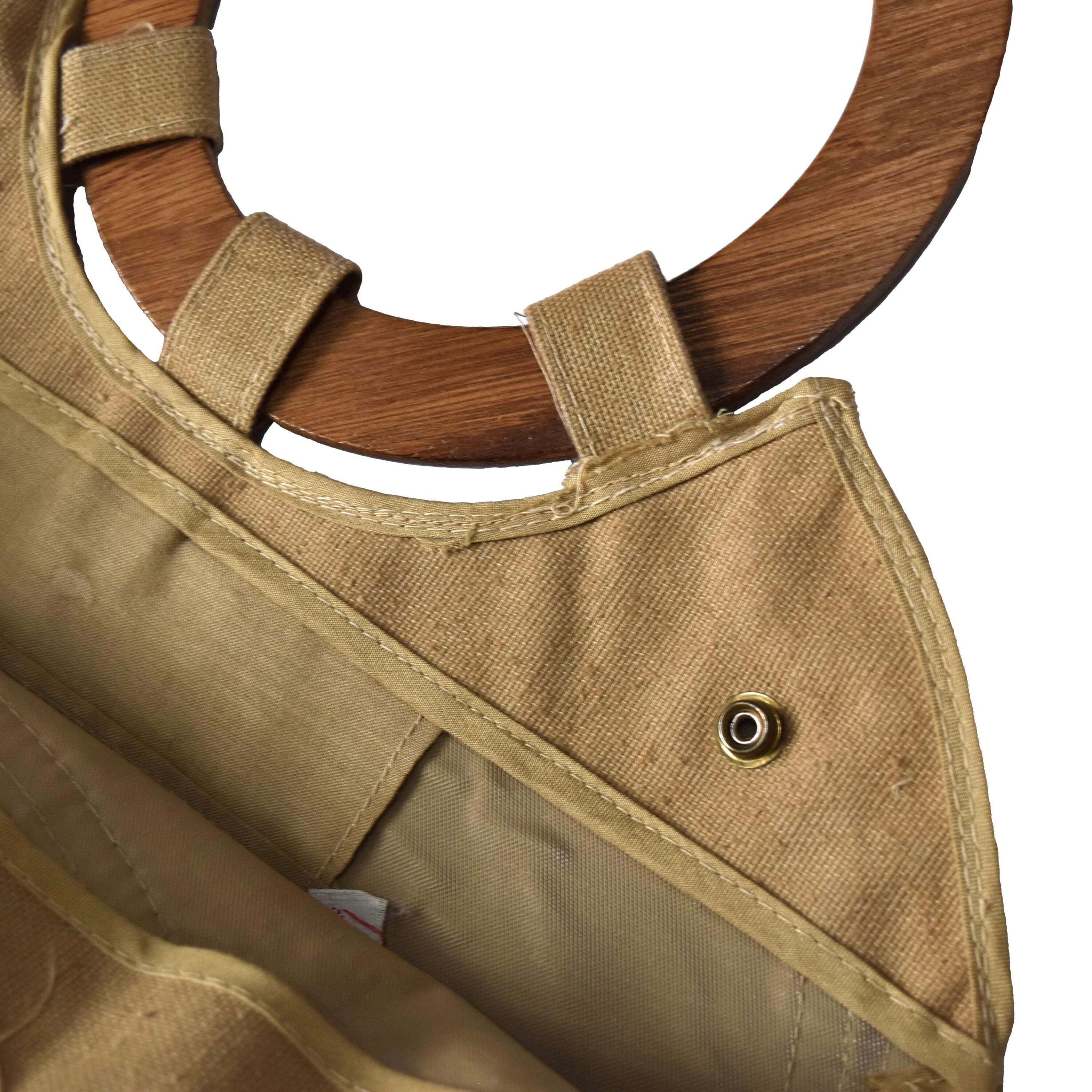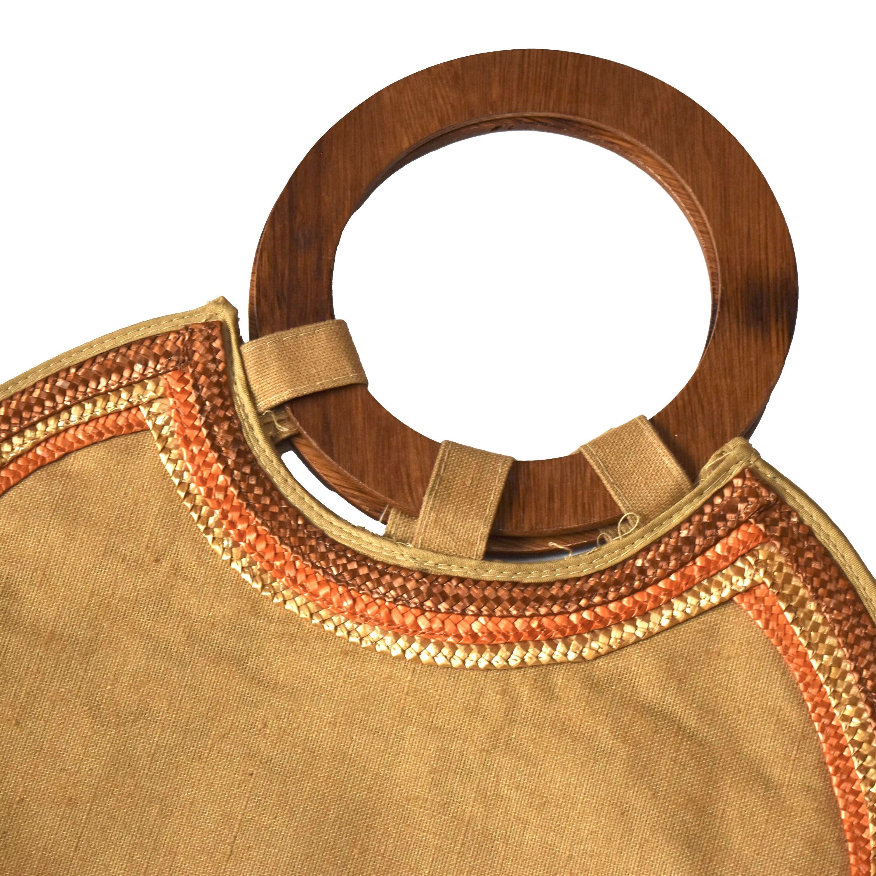 コロンとしたみかんのような楕円のシルエットに、ブラウン、ゴールド、オレンジの編みテープで縁取られており、落ち着いた常夏感が感じられるアイテムです