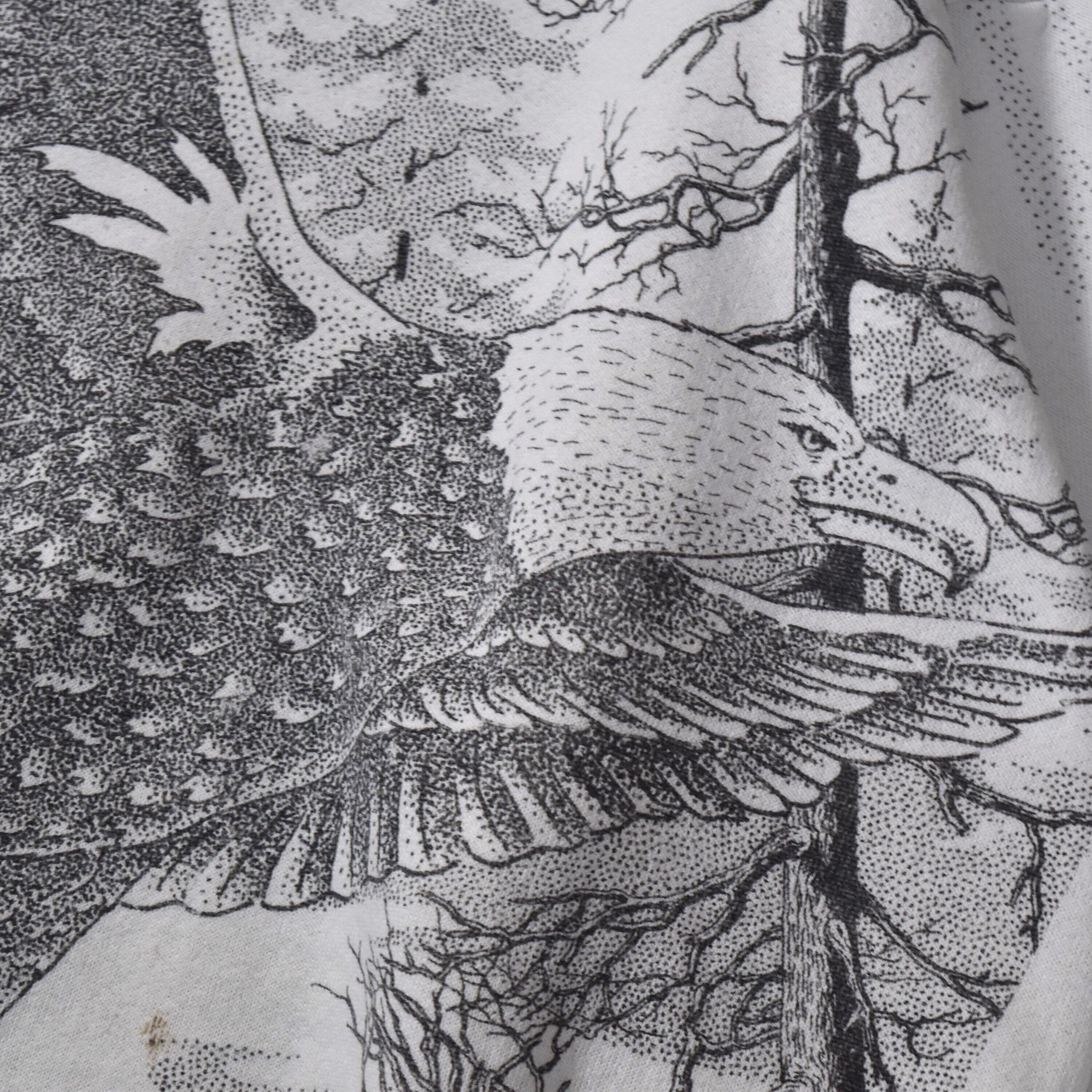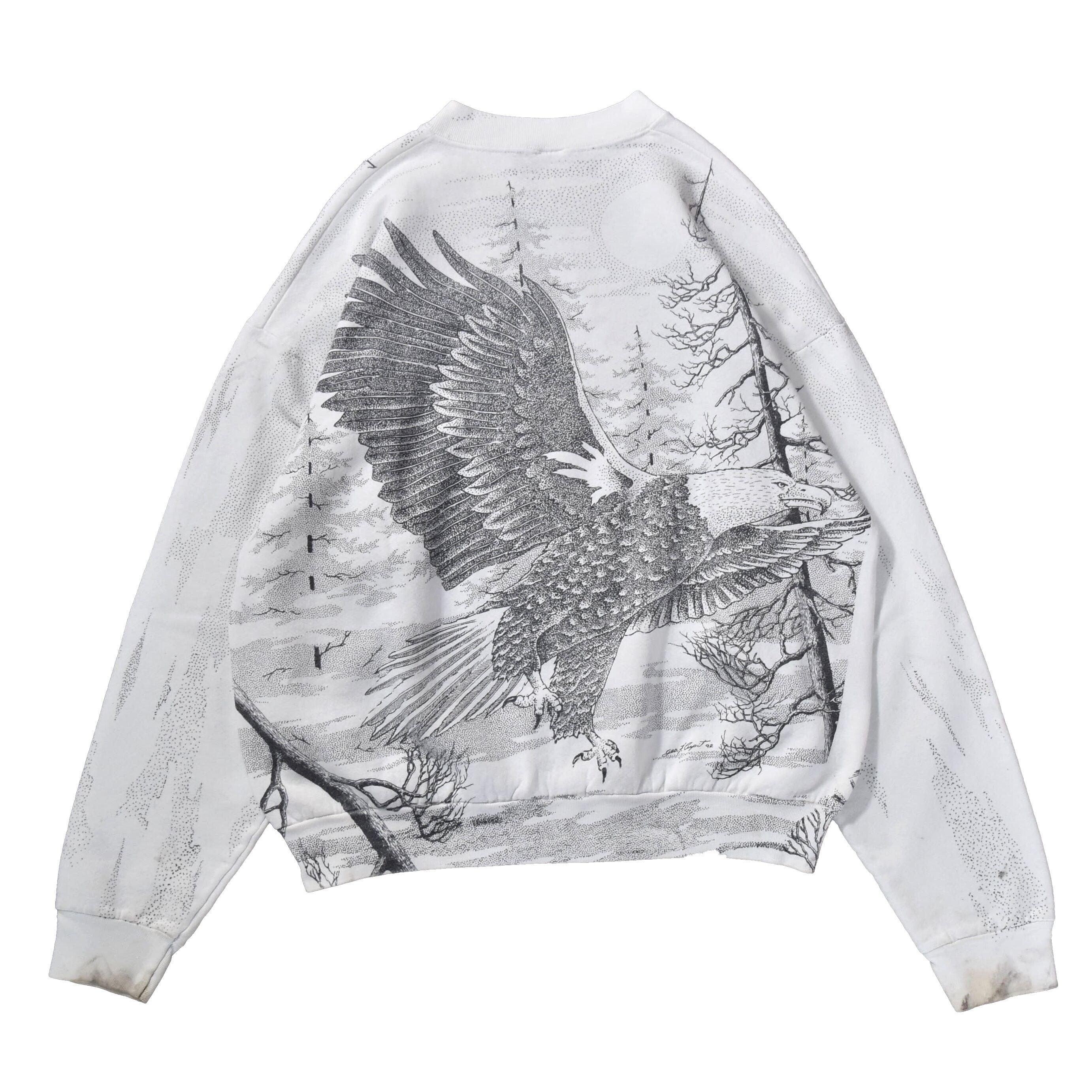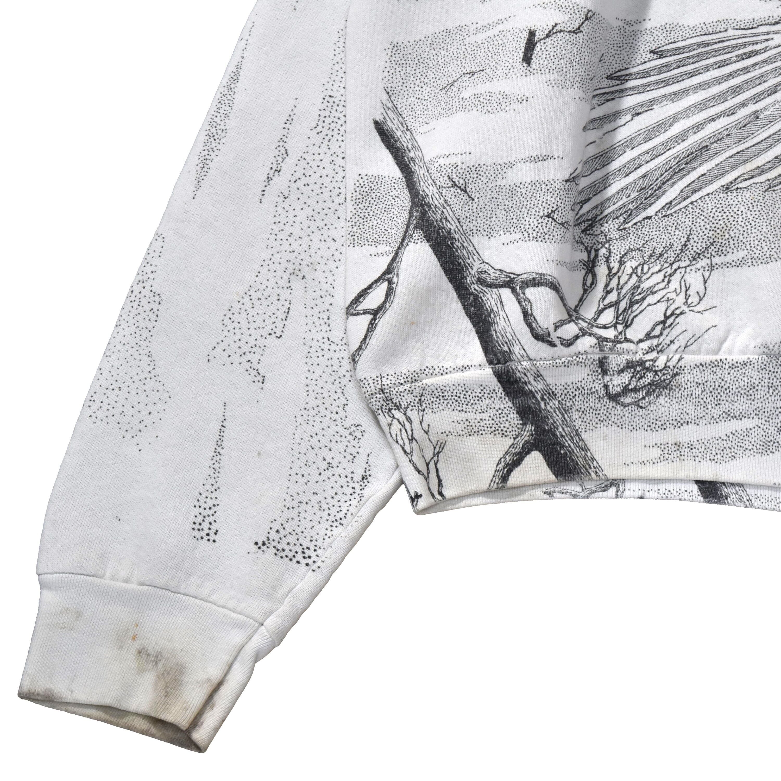 前後同じプリントが首元のリブにまでプリントされている大胆なデザインで、存在感がありながらもモノトーンなのでうるさすぎない、バランス感の良いアイテム
