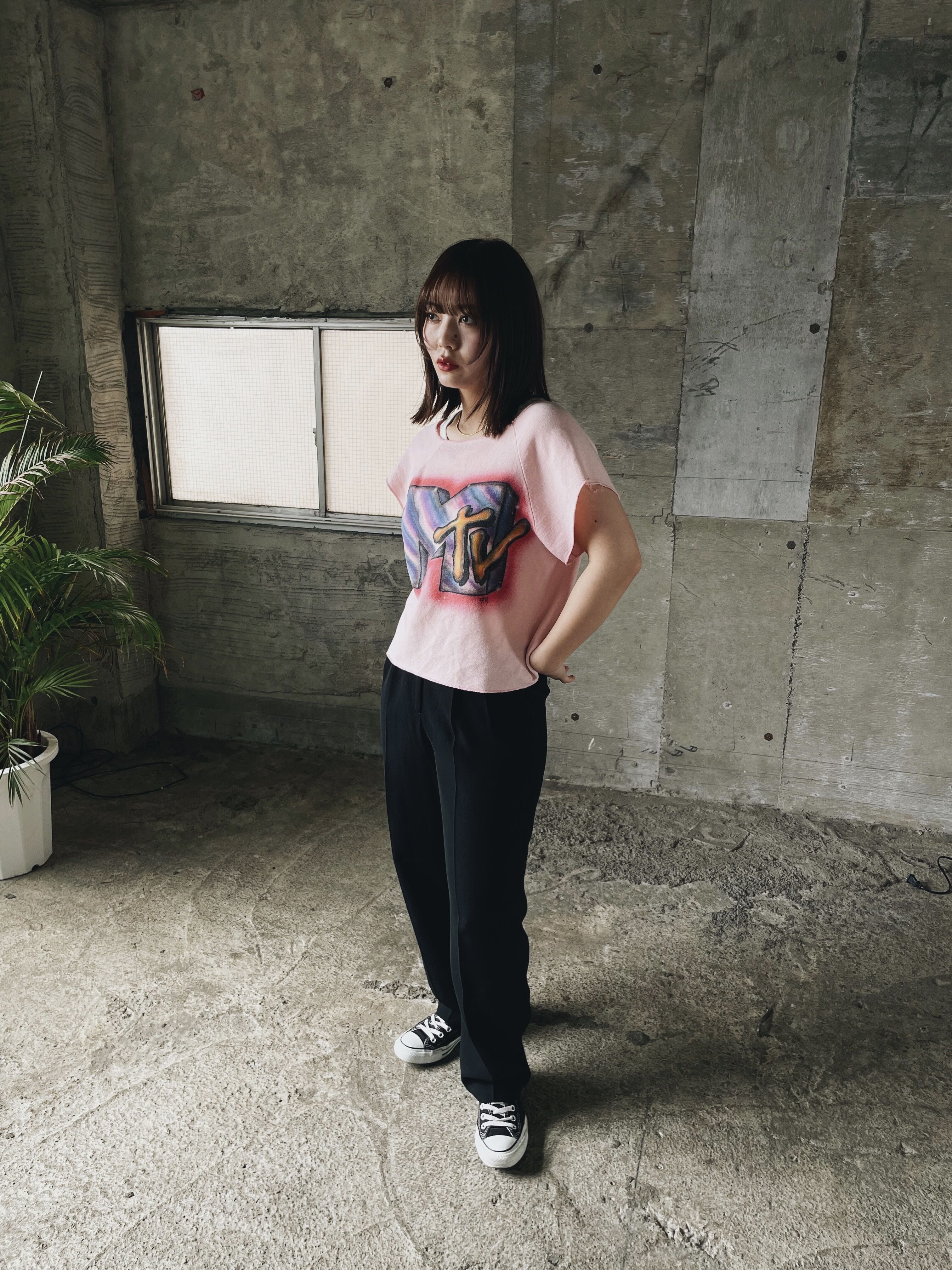 パステルなピンクのボディに、80's感溢れるカラーリングとデザインのMtvロゴがプリントされています