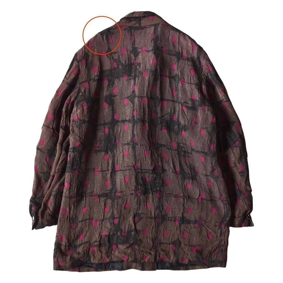 ドットにブラックの格子の線量が重なっていることから、錆色の生地にピンクのドットが施され、その上からブラックの格子が プリントされているようです