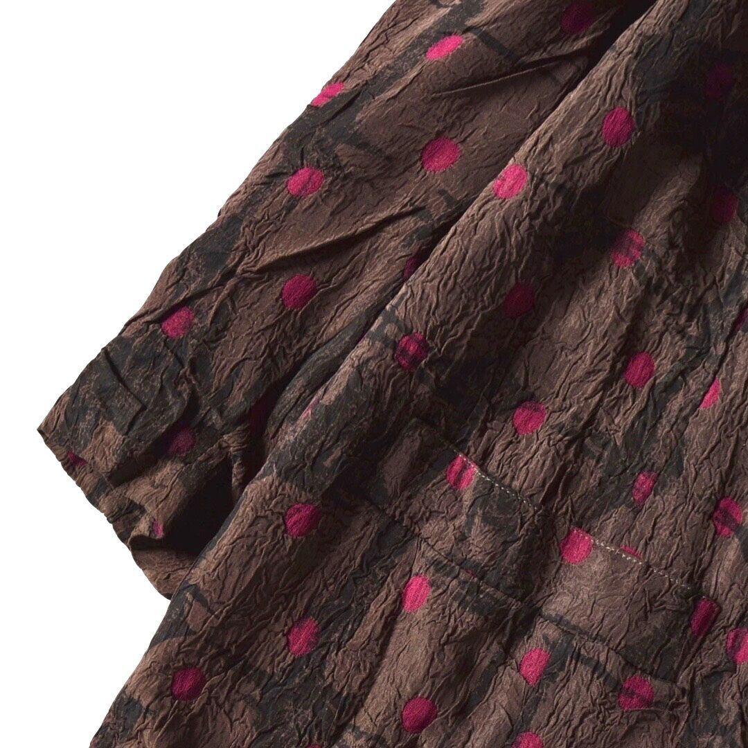 生地はアセテートとビスコースの上品な生地で、表面のシワ加工によるザラっとした質感・シャリ感がありつつもほのかになめらかさを感じます