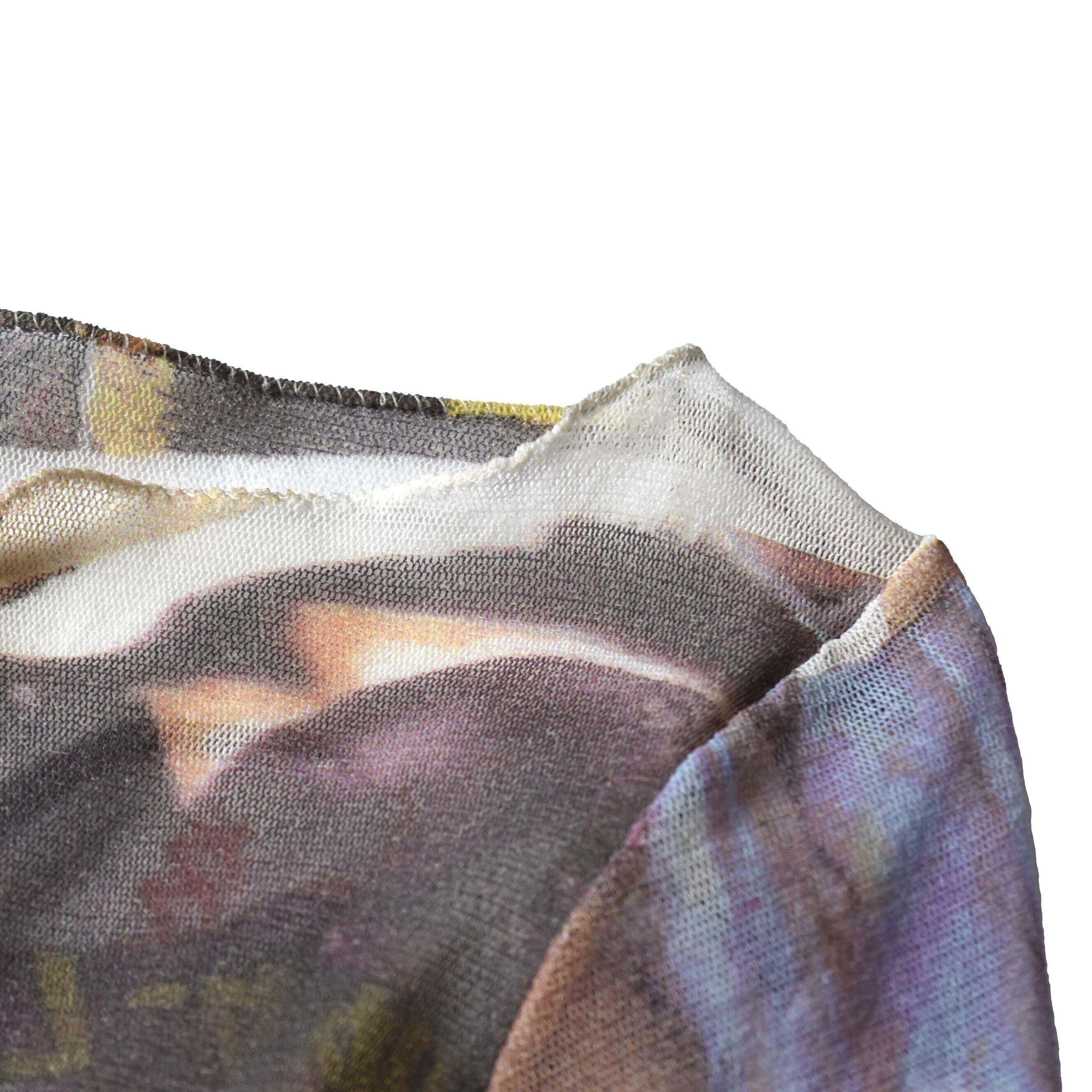 フロント胸下から腹部あたりにはクリアなスパンコールもランダムに施されており、異素材ミックスな要素も