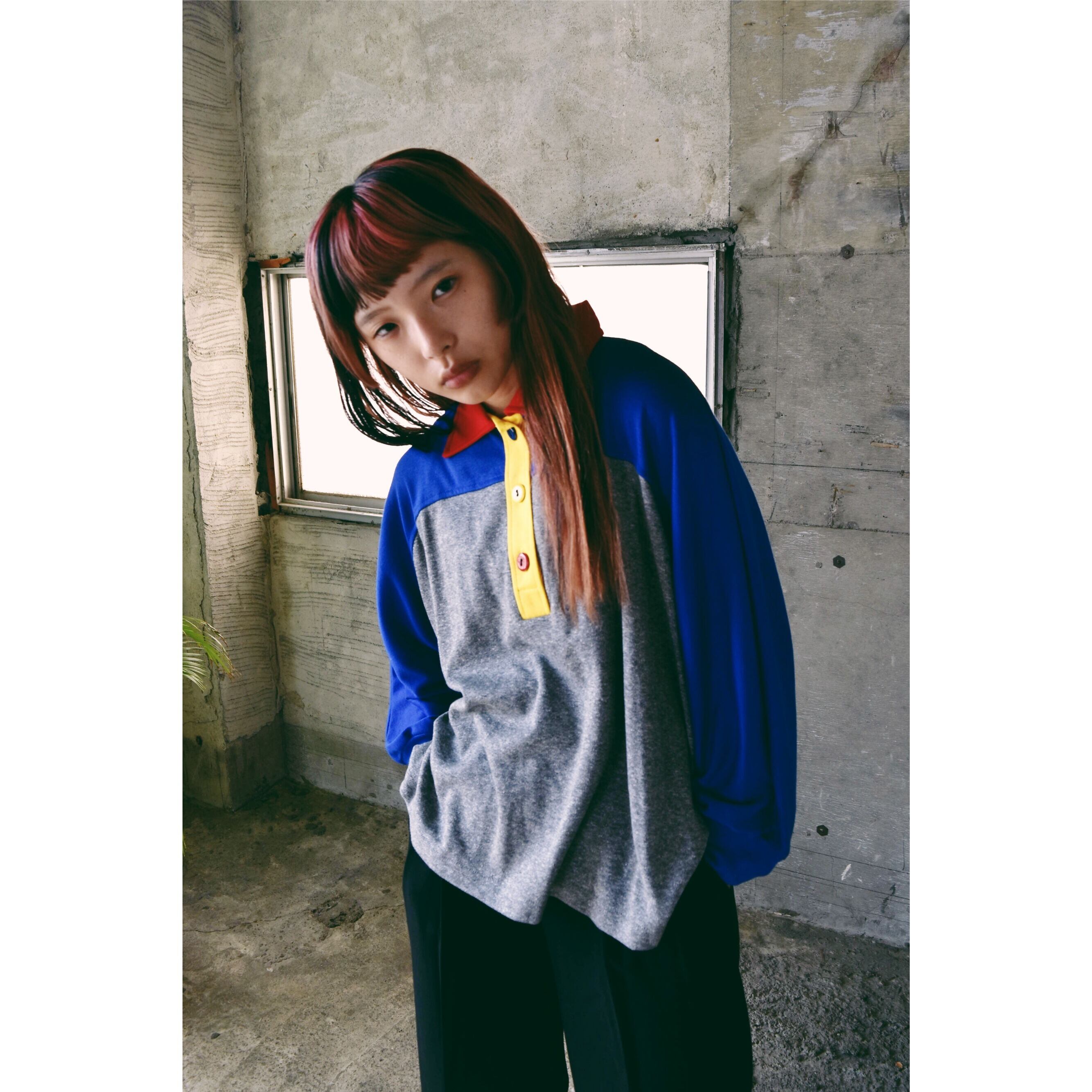 襟や前たて、胸から袖の部分はカラフルですが、胸下からの大部分を占めるパーツにグレーが採用されることで、軽すぎない程よい落ち着きがあります