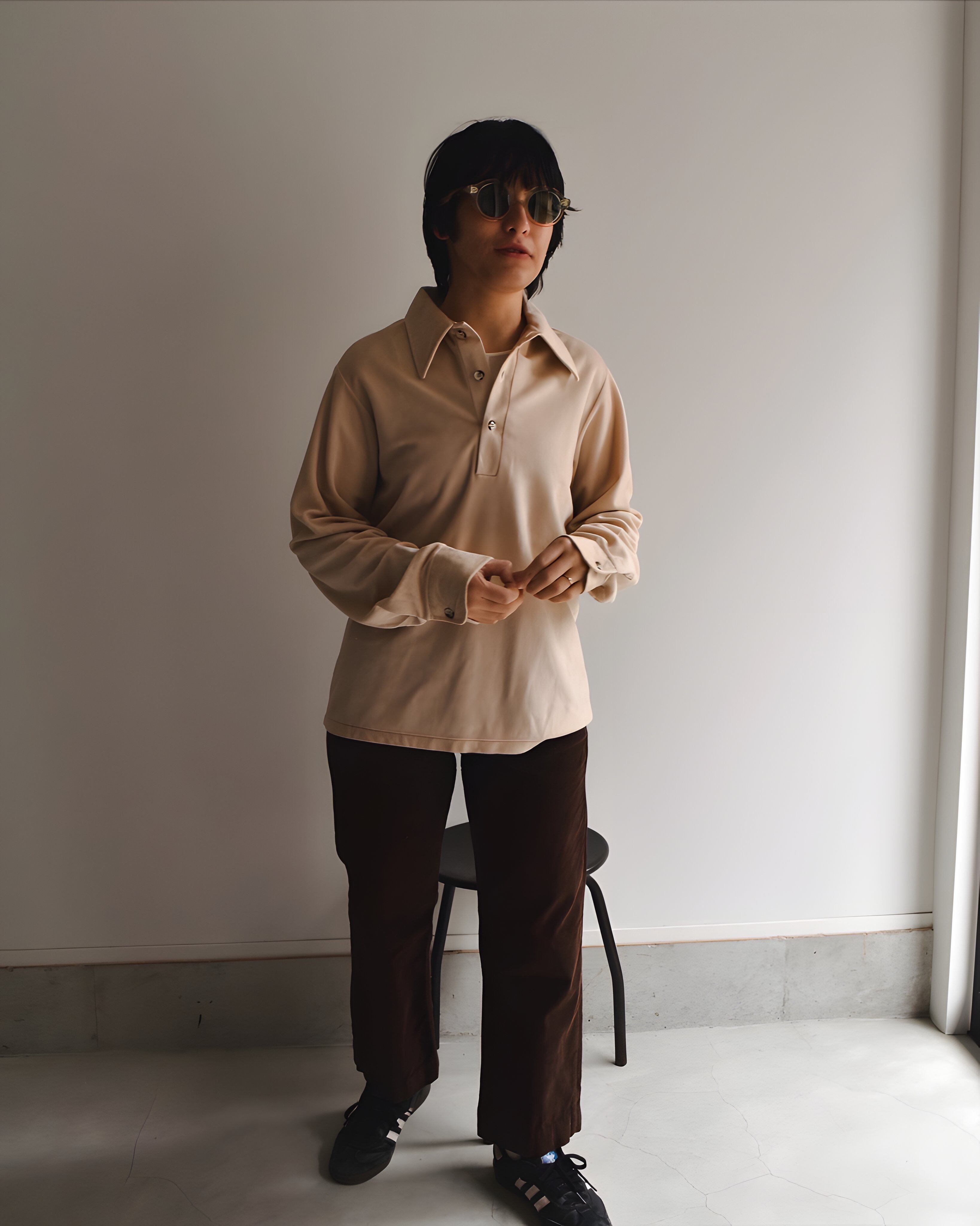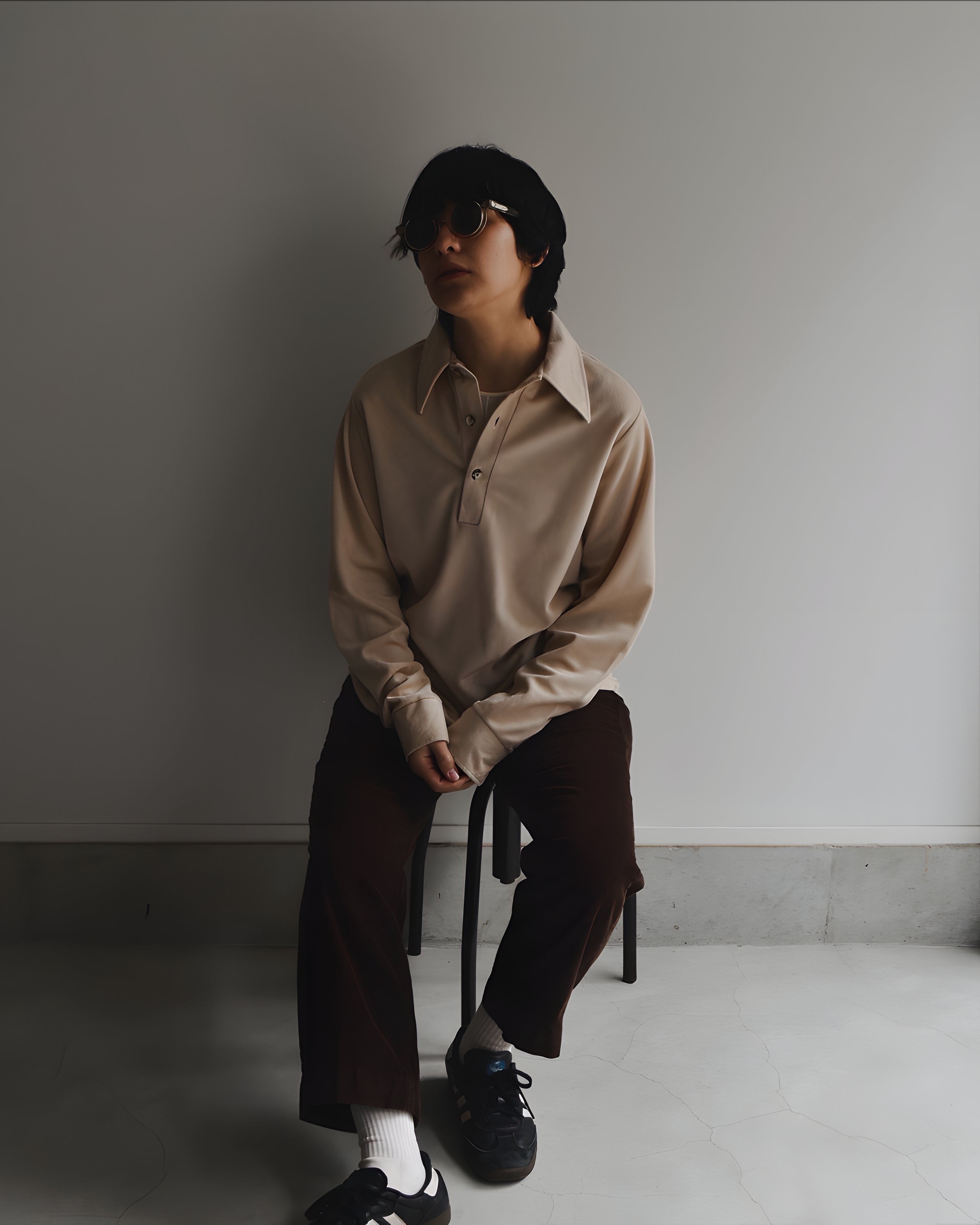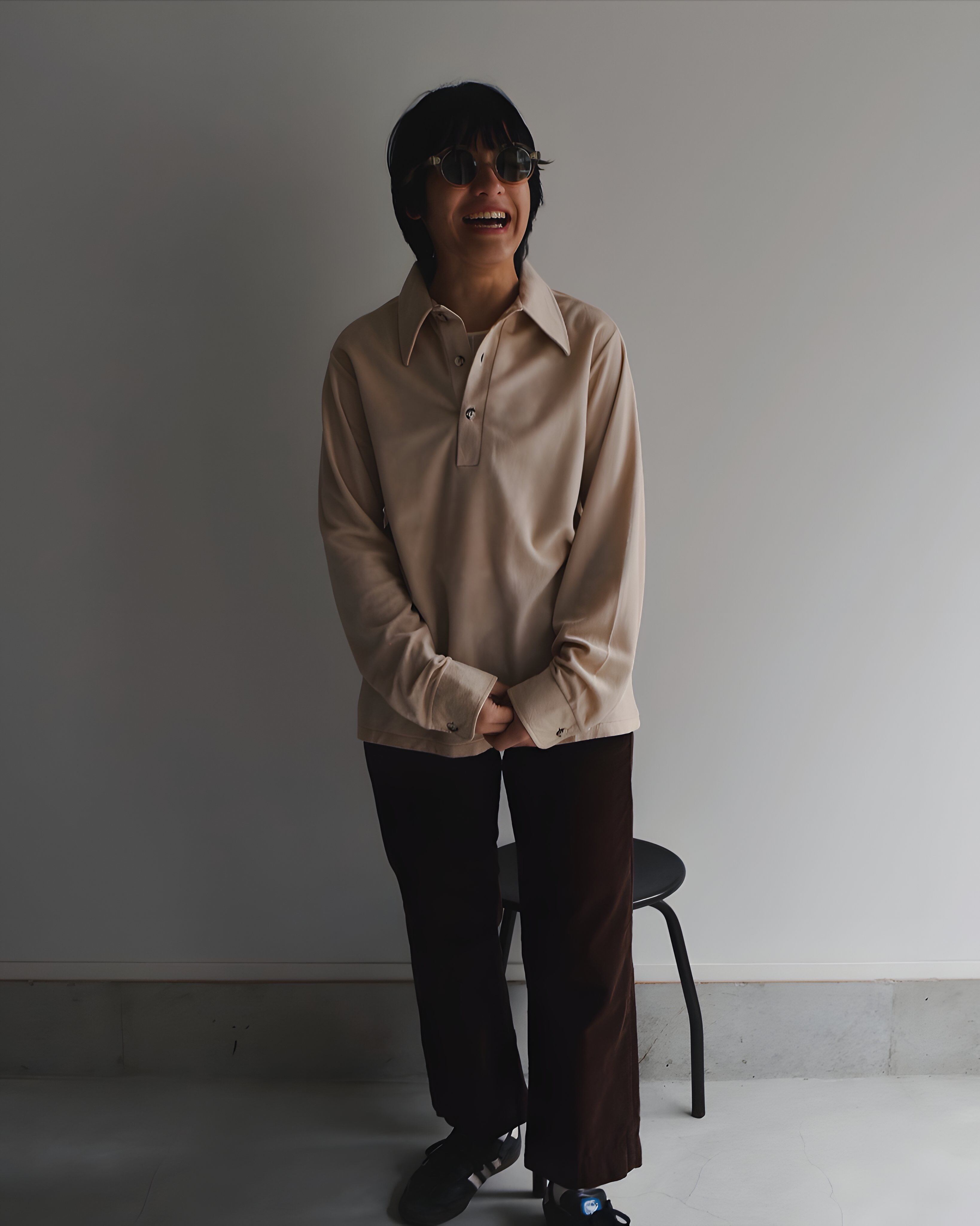 フロントはボタン留めのプルオーバーで、スタイリングが手軽なボックスシルエット