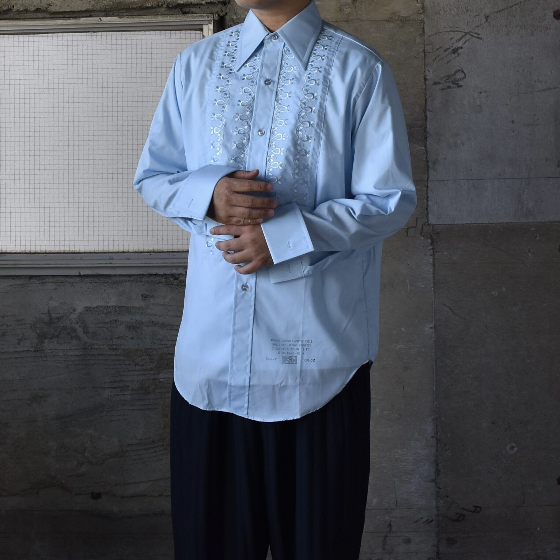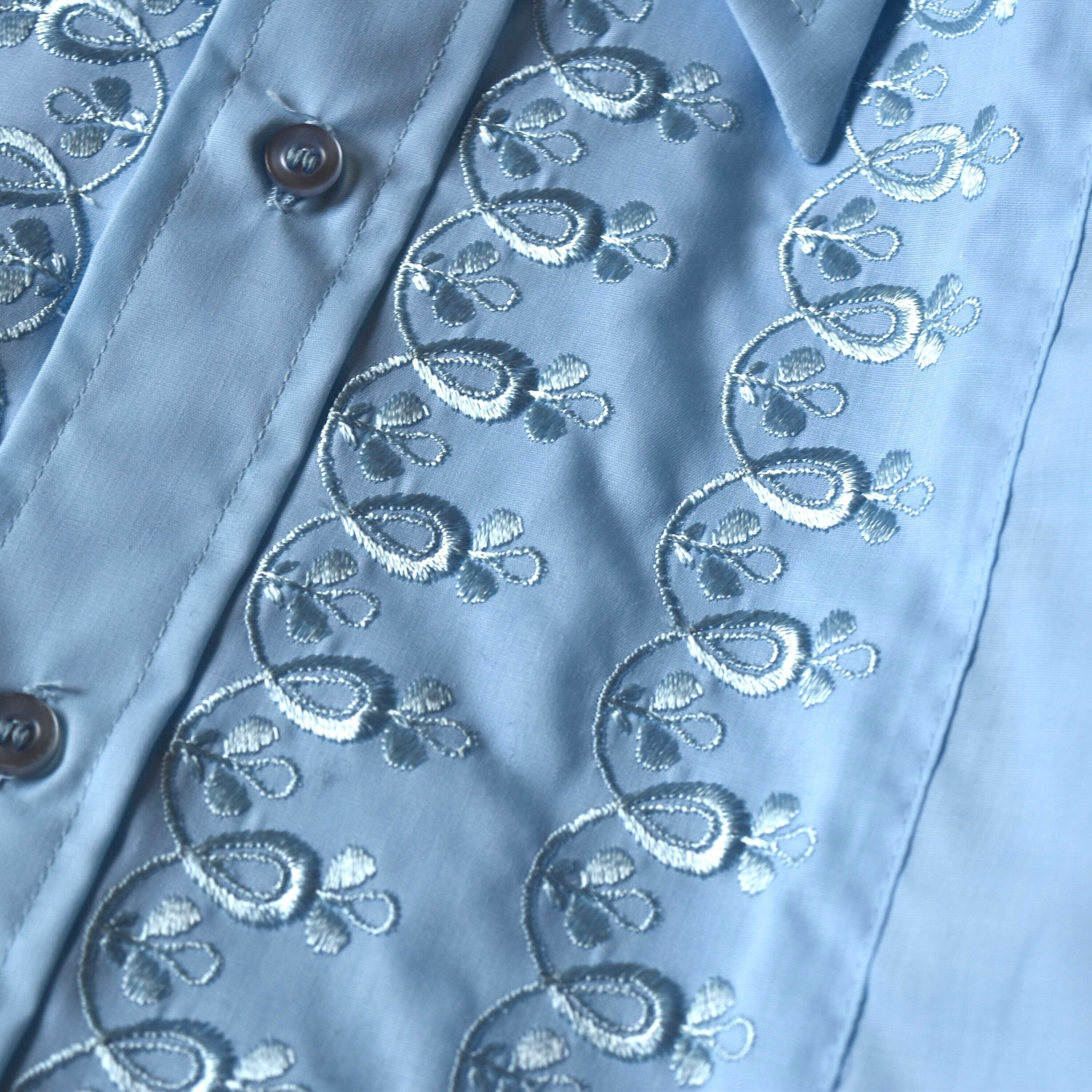 カラーは綺麗なライトブルーで、胸元には同系色の美しい刺繍が施されています