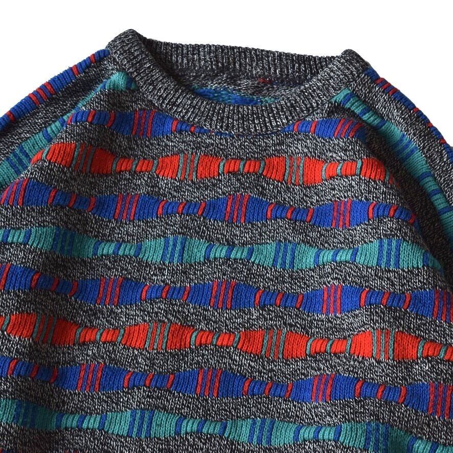 COOGIなどの立体系のニットと比べると、表面の立体感は控えめですが、カラーリングも激しすぎず、スタイリングしやすいアイテムとなっています