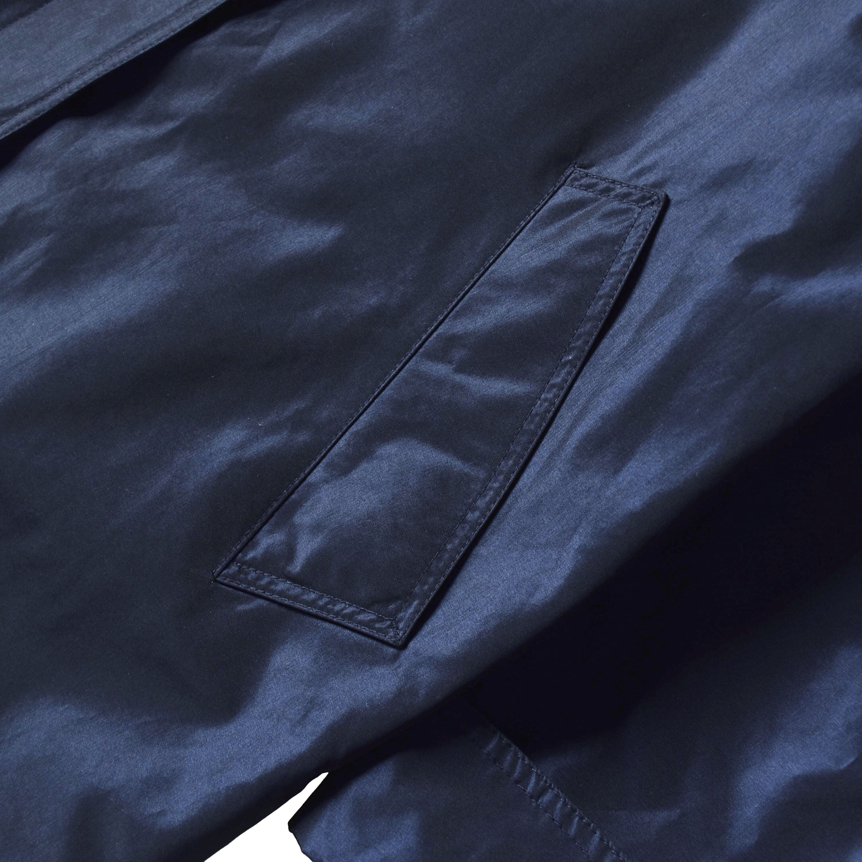 生地はナイロンとポリエステルからなる生地で、ツルッとした肌触りでタフさがあり、一般的なナイロン生地でイメージするようなシャカシャカ感はなく、ナイロン生地としてはやや厚め