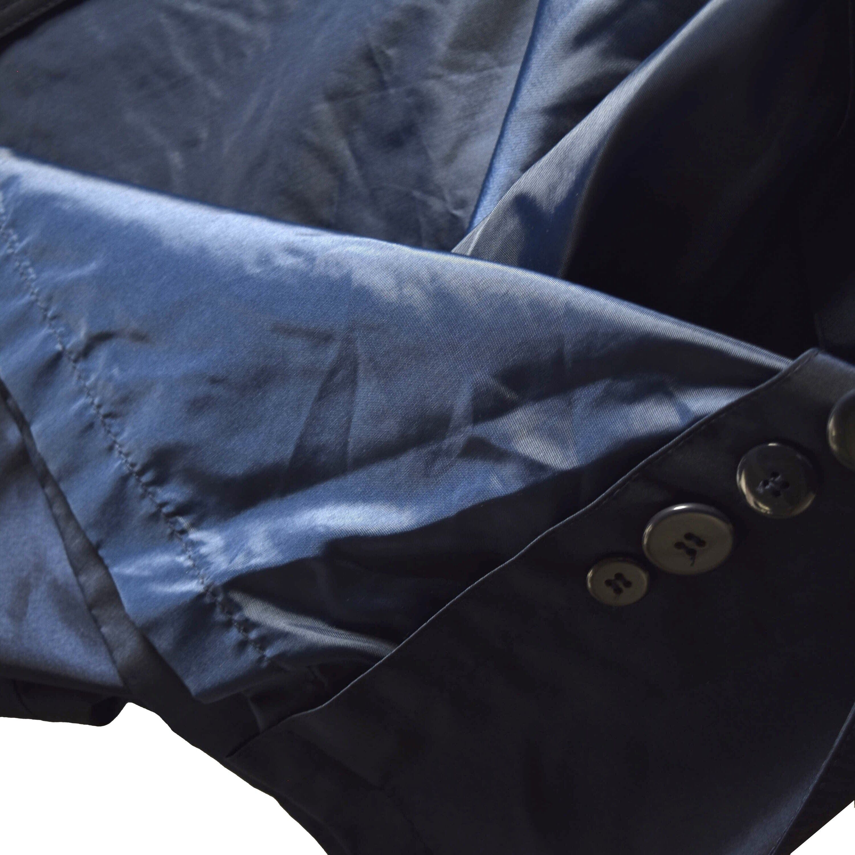 首元にはよりタイトに締めるための小さなボタン留めのベルトがつき、袖口は折り返して留めたようなディティール