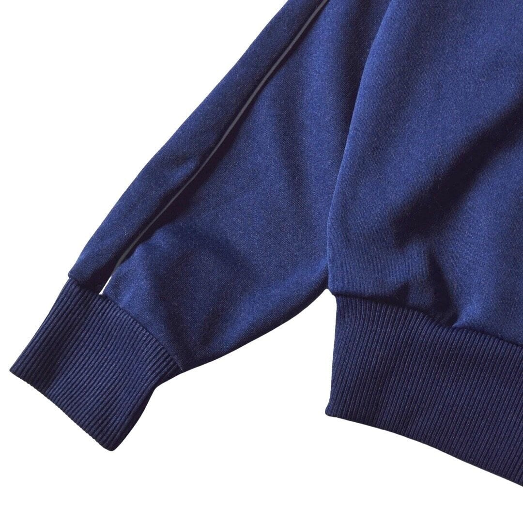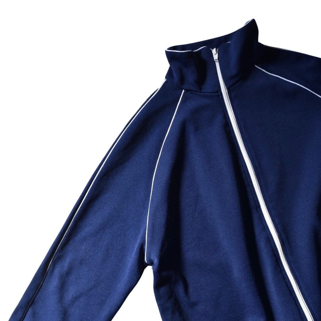 カラーはネイビーで、襟や袖、脇にホワイトのパイピング