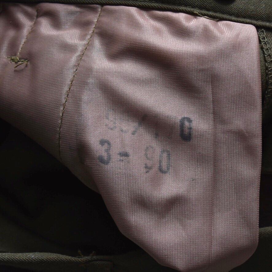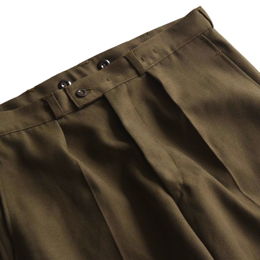 ボタンフライで表面にボタンが出ないフロントのディティールで、ウエスト周りにはベルトループ、内側にもサスペンダー用のボタンがあります
