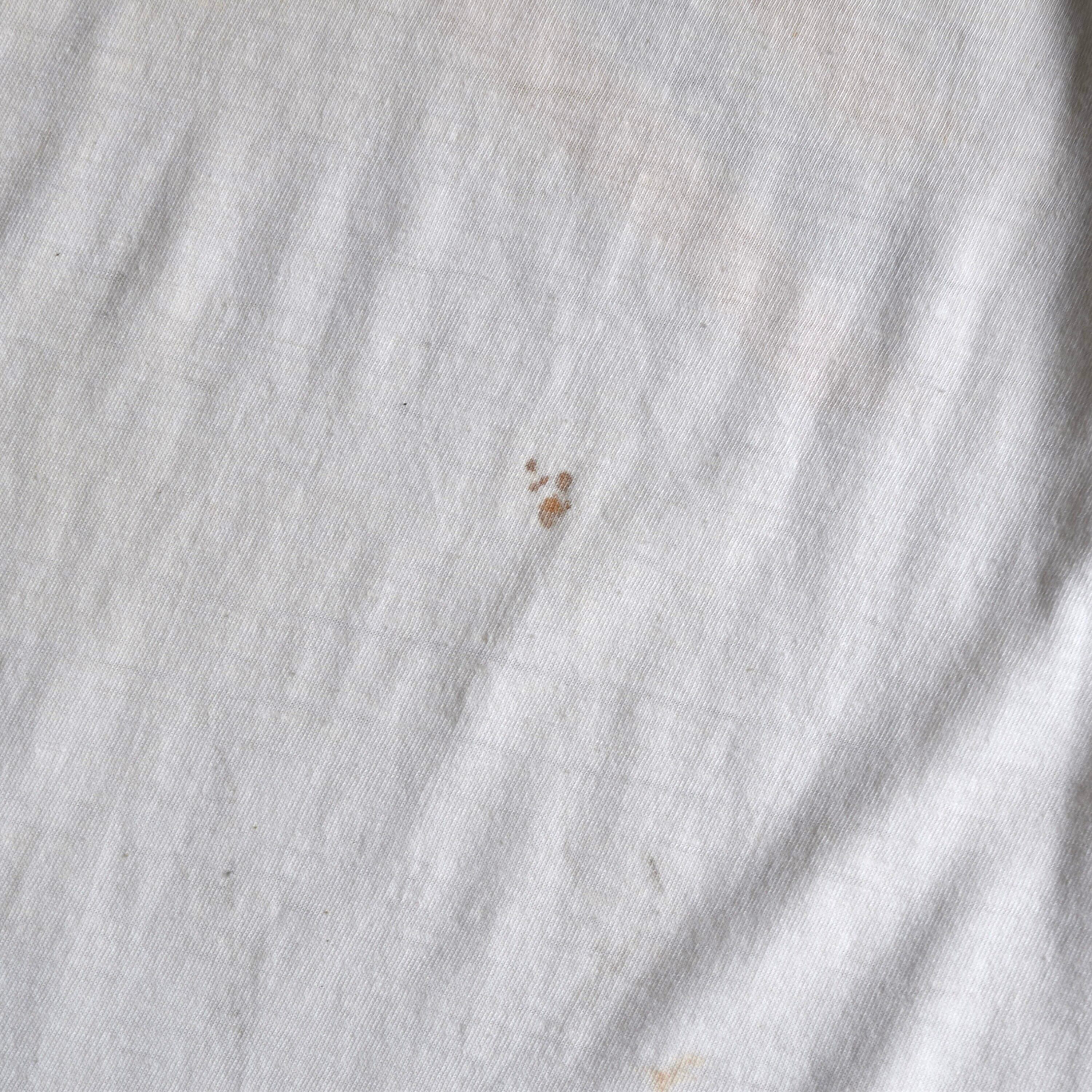 ホワイトのボディは経年変化により全体的に全体的に黄味がかっており、フロントのプリントもフェード感があって古着特有の退廃感のある佇まい