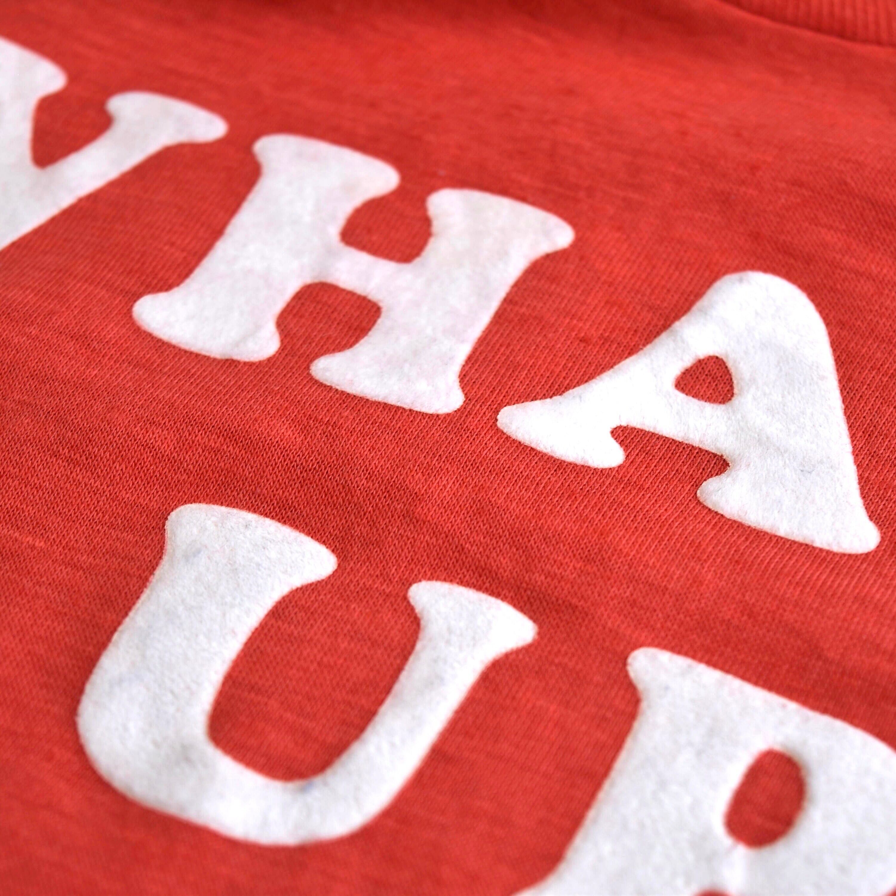 フロントにはホワイトのフロッキープリントが施されており、フェルトの様な質感です