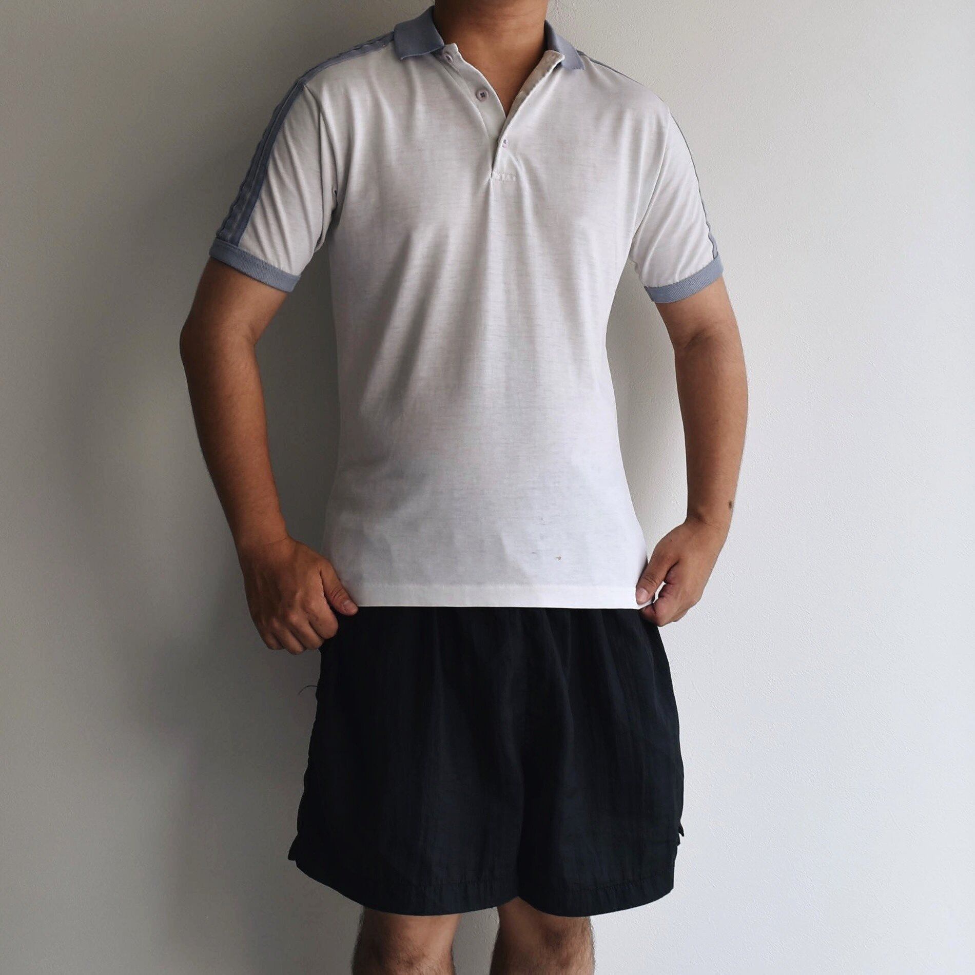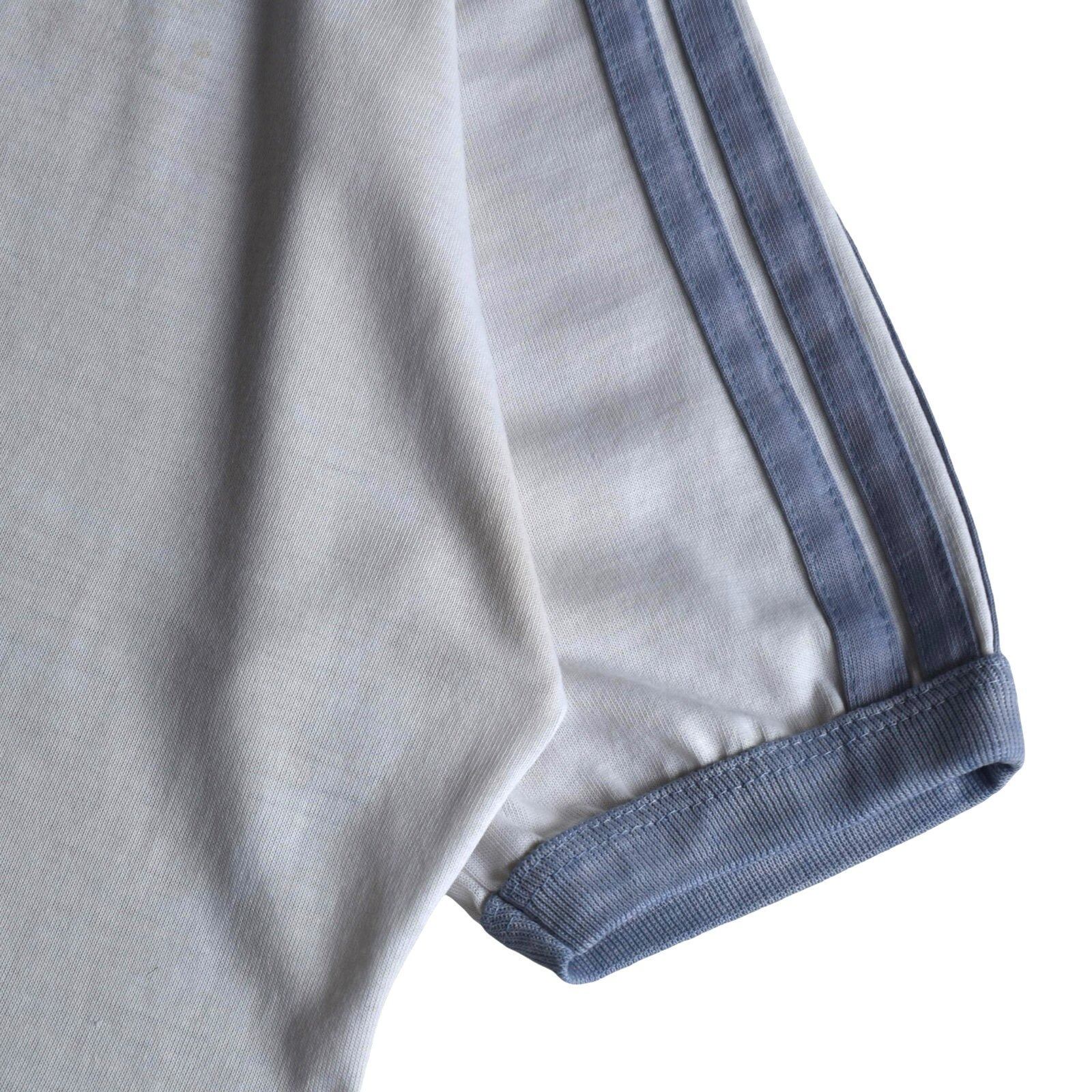 ホワイトをベースに、袖口リブや肩の3本ライン、襟リブは淡いブルー