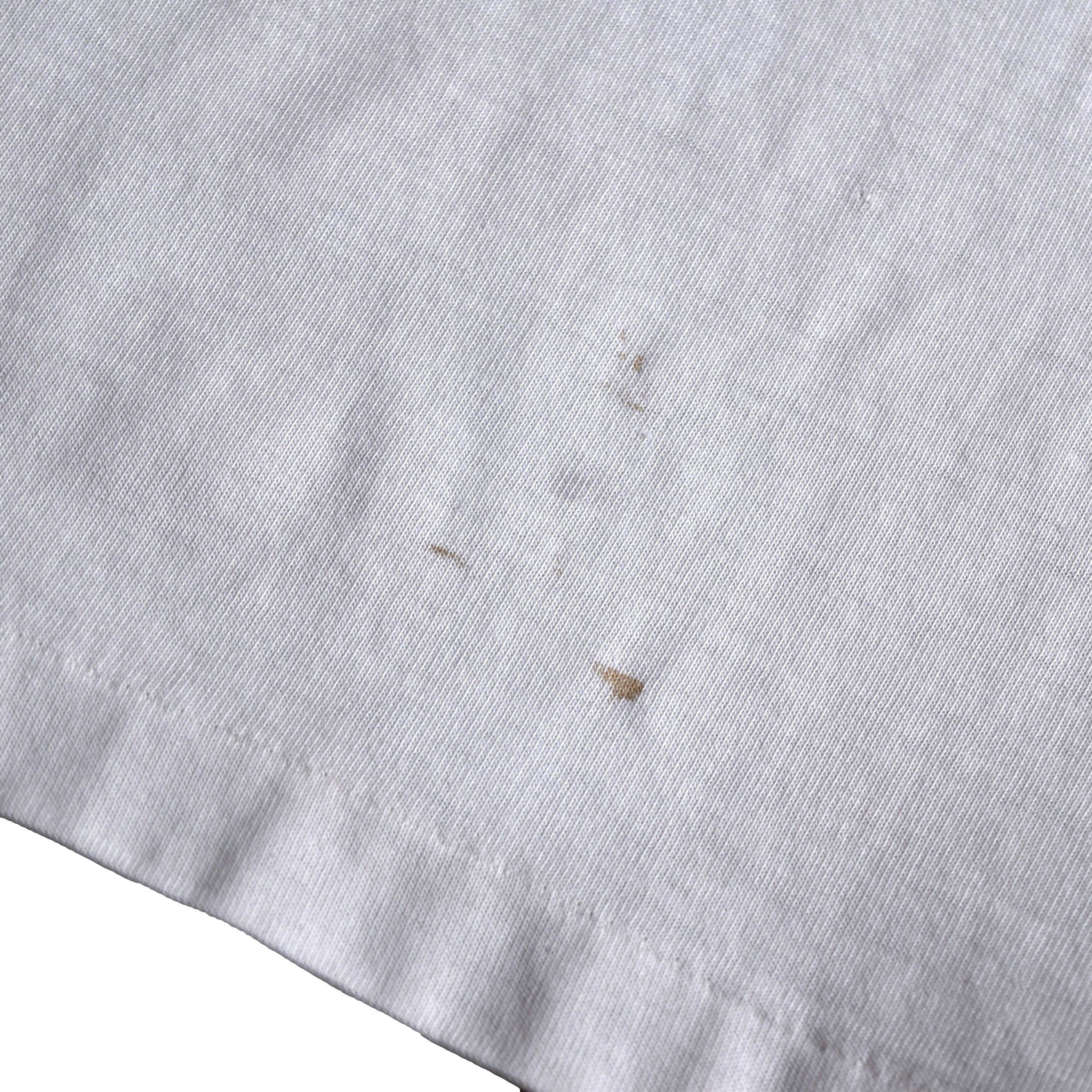 胸元の取れフォイルのロゴプリントもほとんど消えかけており、クリーム色に変色した名残が残るばかりです