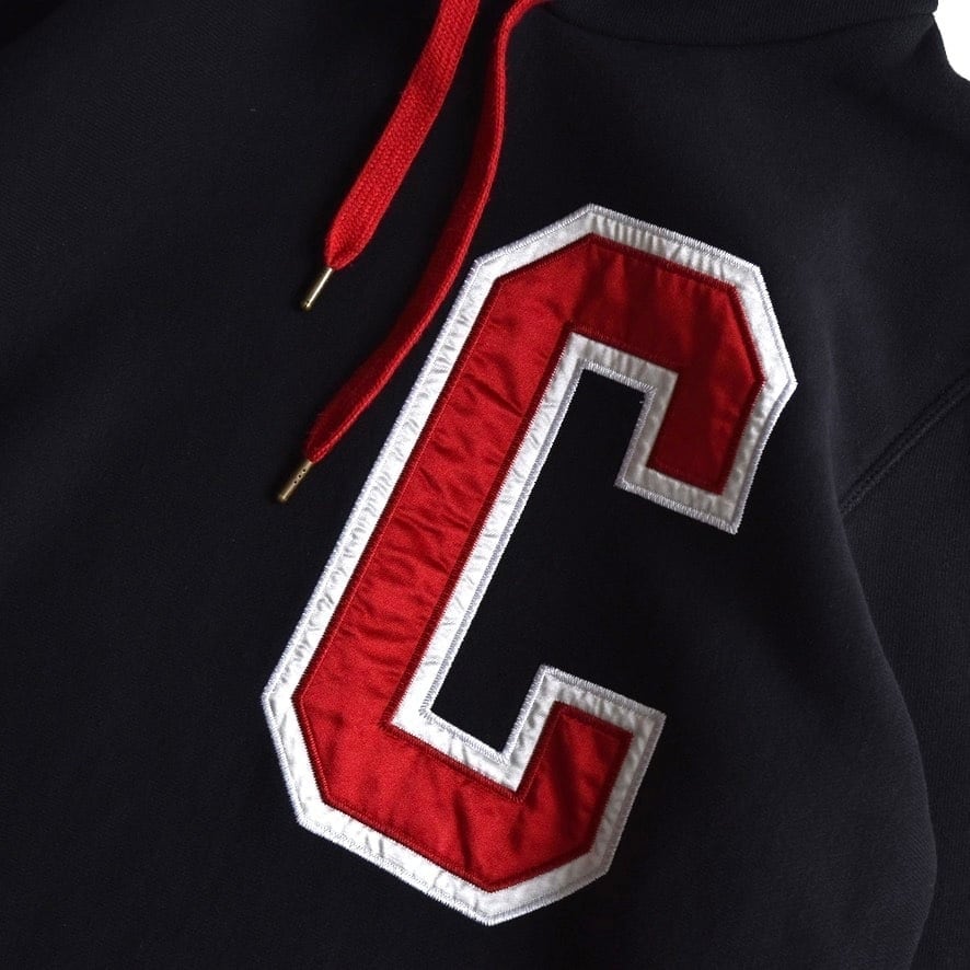 胸元に大きな"C"が付いた、アメカジ感がありつつも比較的シックな佇まいのパーカー