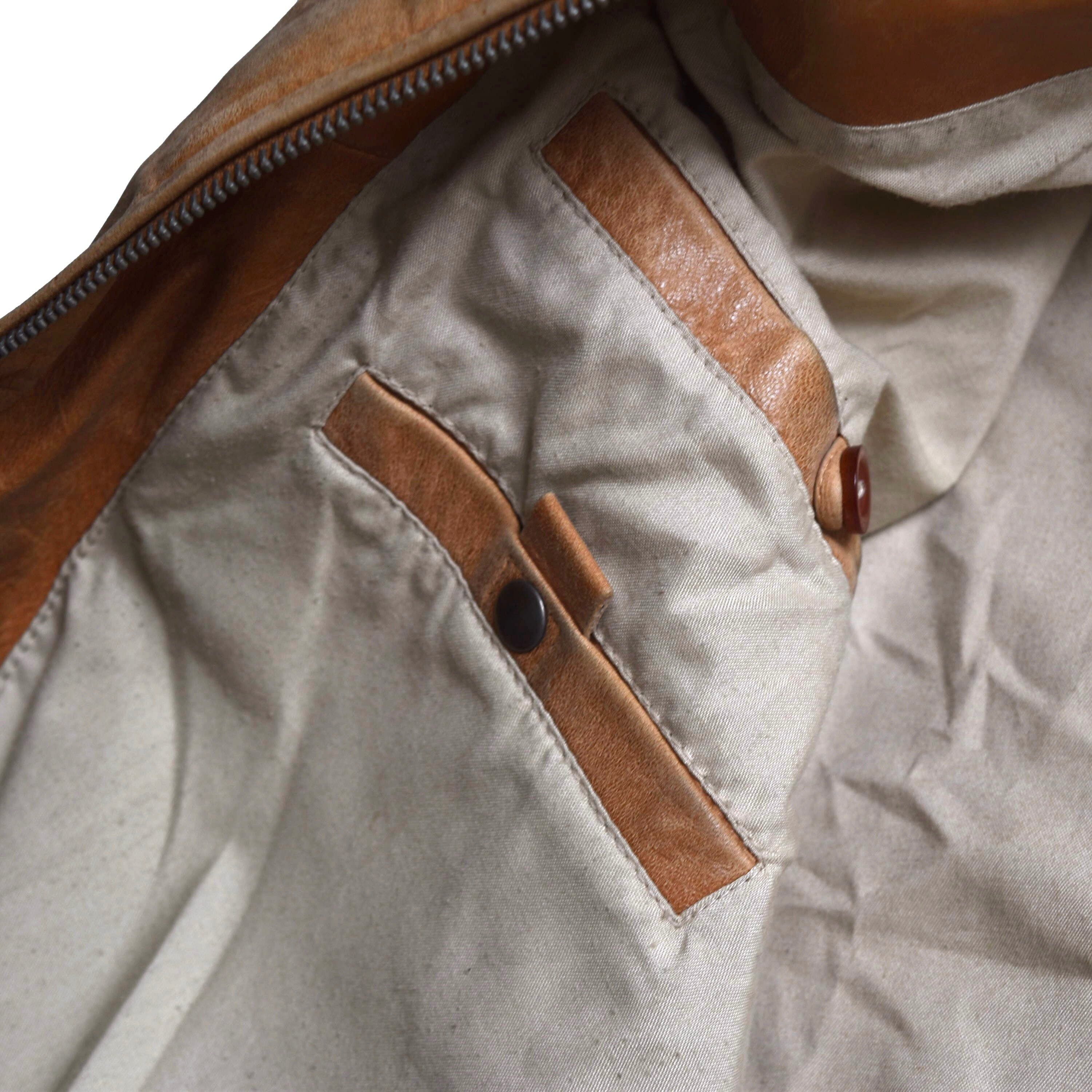ブラウン系のカラーリングで、全体的に使い込まれて味のある風合いになったレザーが渋く、可愛い絶妙な雰囲気を出しています