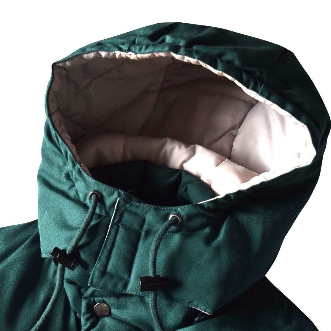 オールグリーンで、内側にはベージュ系のナイロン生地が使用されています